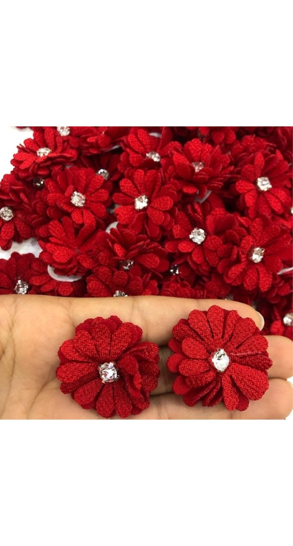 FLOR DE TECIDO COM STRASS (PCT C/ 2UN)