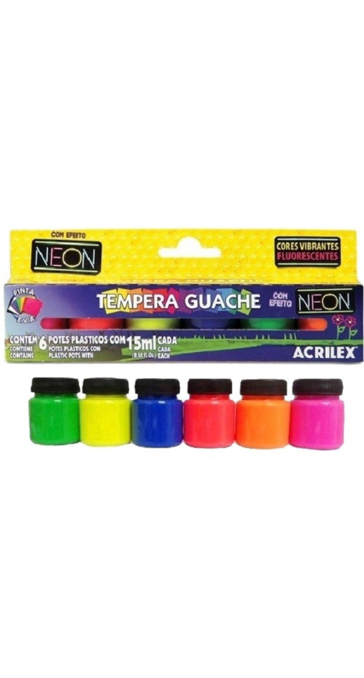 TINTA TEMPERA GUACHE NEON COM 6 CORES ACRILEX